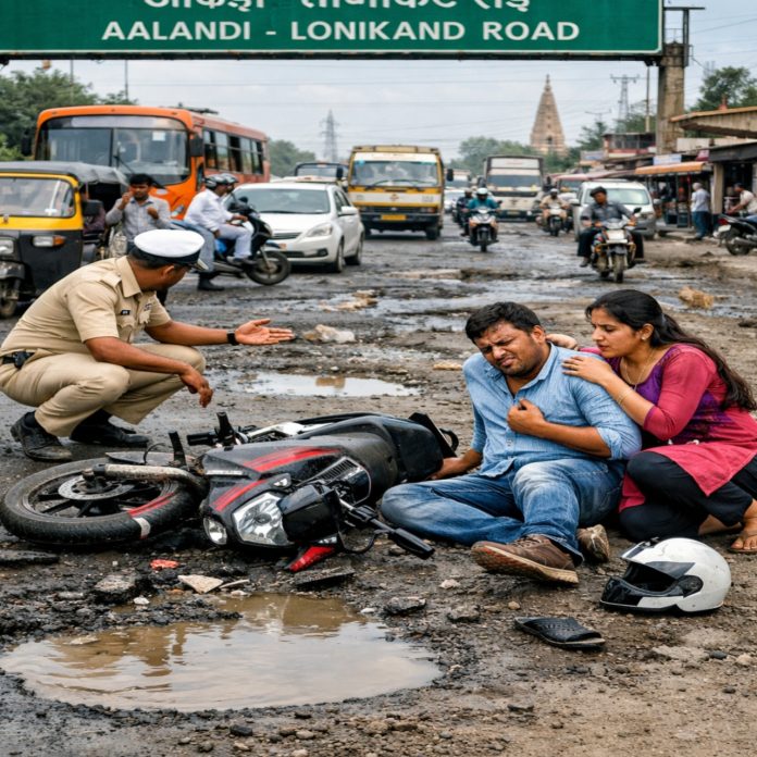 आळंदी–नगर रोड व इंद्रायणी पुलाचे काम रखडले; खड्ड्यांमुळे अपघातांचा धोका वाढला