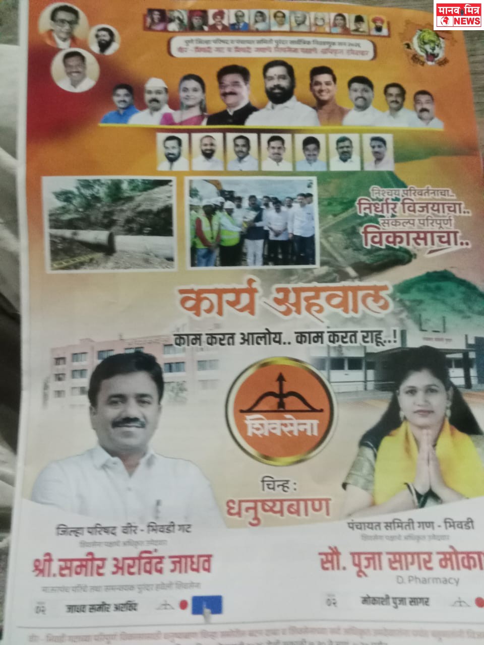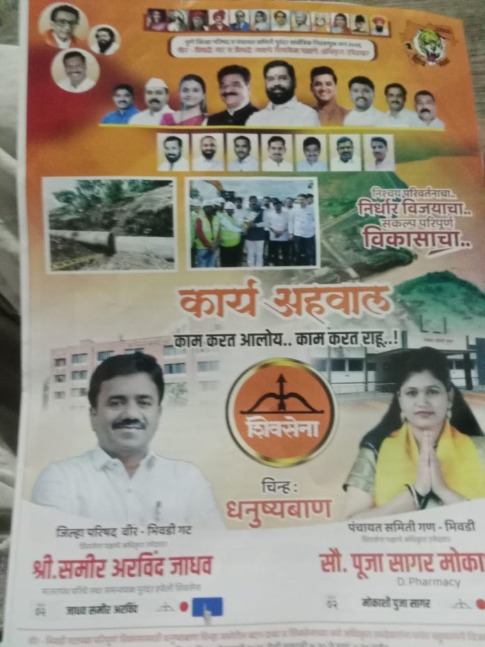 पुरंदर तालुक्यातील पंचायत समिती गण भिवडी व जिल्हा परिषद निवडणुकीसाठी शिवसेना (शिंदे गट) पक्षाने अधिकृत उमेदवार जाहीर केले आहेत. जिल्हा परिषदेसाठी श्री. समीर अरविंद जाधव, तर पंचायत समिती गण भिवडीसाठी सौ. पूजा सागर मोकाशी यांना पक्षाची अधिकृत उमेदवारी देण्यात आली आहे.