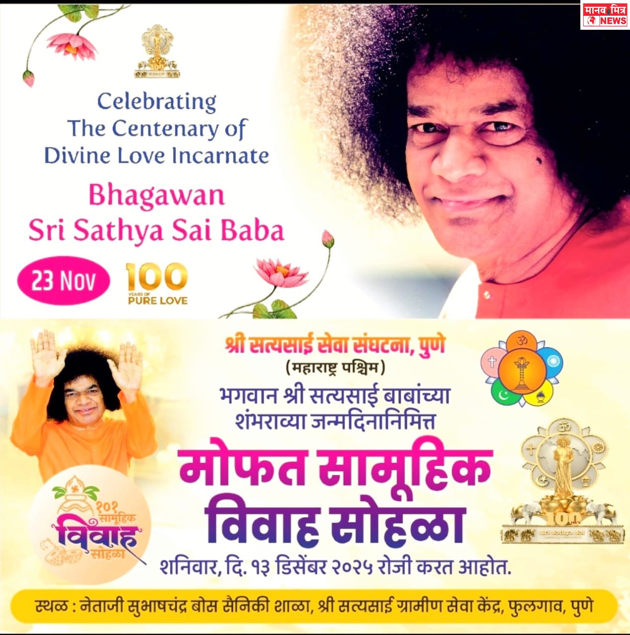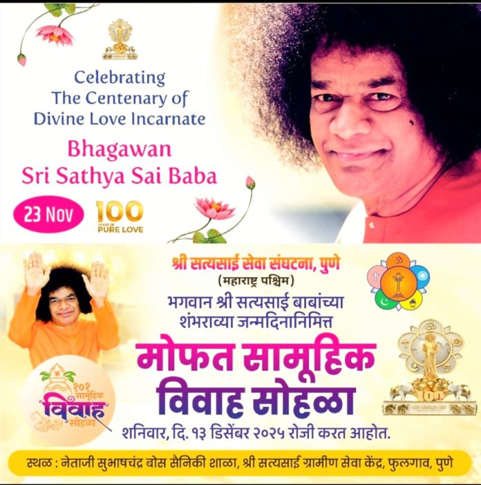 फुलगाव (ता. हवेली, पुणे) येथे श्री. सत्यसाई सेवा संघटना पुणे, महाराष्ट्र पश्चिम यांच्या वतीने भगवान सत्यसाई बाबांच्या शंभराव्या जन्मदिनानिमित्त शनिवार, १३ डिसेंबर २०२५ रोजी नेताजी सुभाषचंद्र बोस सैनिकी शाळा परिसरात १०१ मोफत सामूहिक विवाह सोहळ्याचे भव्य आयोजन करण्यात आले आहे. या सोहळ्याचे नियोजन फुलगाव समिती प्रमुख सुनील वागस्कर यांच्या नेतृत्वात सुरू असून वधू-वरांसाठी आवश्यक साहित्य, मंगळसूत्र, वस्त्र, भांडीसाहित भोजन व्यवस्था पूर्णतः मोफत ठेवण्यात आली आहे.