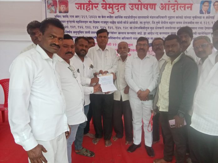 महाराष्ट्र महसूल अधिनियम १९६६ चे कलम १४३ अन्वये, पुरंदरचे तहसिलदार विक्रम राजपूत यांनी उद्योजक अन्वर शेख यांना महार वतन जमिनीतून रस्ता मंजूर केला आहे. हा आदेश बेकायदेशीर व नियमबाह्य असल्याचा आरोप करत, पीडित शेतकरी प्रकाश रणपिसे, चंद्रकांत रणपिसे व अशोक रणपिसे यांनी उपविभागीय अधिकारी तथा प्रांत, पुरंदर यांच्या कार्यालयासमोर सोमवार, दि. १९ जानेवारी २०२६ पासून बेमुदत आंदोलन सुरू केले आहे.