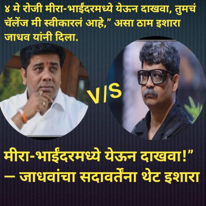 मीरा-भाईंदर परिसरात राजकीय वातावरण तापलं असून मराठी भाषेच्या मुद्द्यावरून मनसे नेते अविनाश जाधव यांनी अॅडव्होकेट गुणरत्न सदावर्ते यांना थेट आव्हान दिलं आहे. “४ मे रोजी मीरा-भाईंदरमध्ये येऊन दाखवा, तुमचं चॅलेंज मी स्वीकारलं आहे,” असा ठाम इशारा जाधव यांनी दिला.