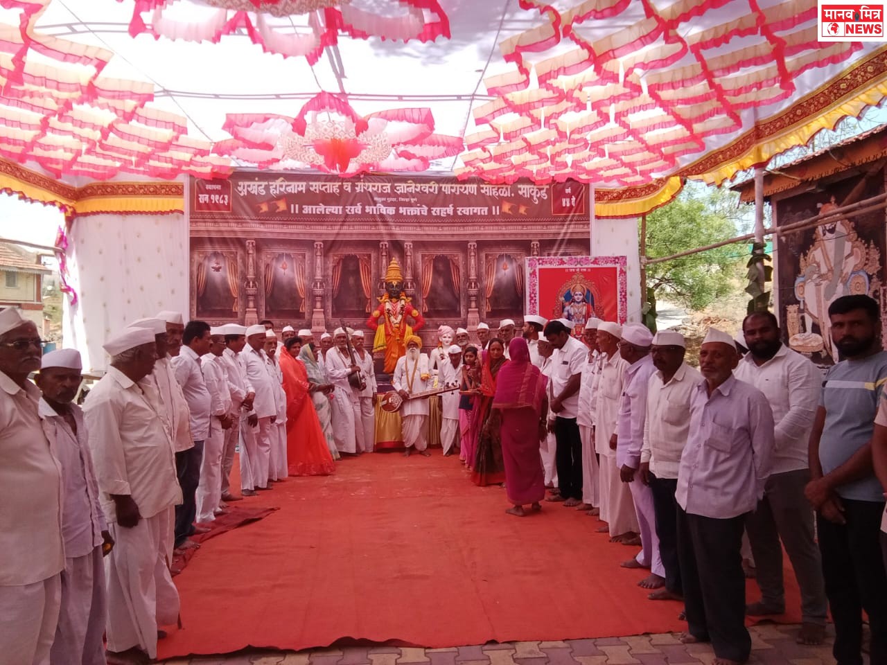 साकुर्डे गावात हरी नाम सप्ताहाचा शुभारंभ; 21 ज्येष्ठ तपस्वींच्या हस्ते ज्ञानेश्वरी ग्रंथ पूजन