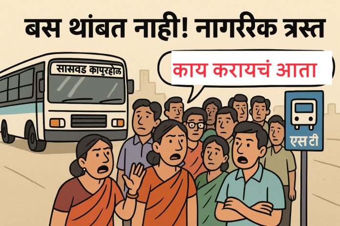 सासवड–कापूरहोळ मार्गावर प्रवाशांची मोठी गैरसोय; एसटी बस थांबत नाहीत, नागरिकांची तीव्र नाराजी!