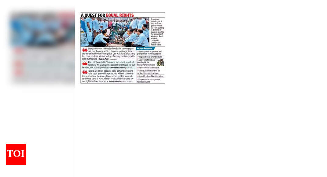 पुणे: पुणेच्या पूर्वेकडील भागातील रहिवासी वॅडगाव शेरी, वाघोली, लोहेगाव, धनोरी आणि जवळपासच्या भागातील पुणे नगरपालिका (पीएमसी) इमारतीच्या बाहेर मंगळवारी निषेध करतात आणि नागरी मुख्य नौदल किशोर रामकडे संपर्क साधला – ज्याची अनुपस्थिती रोजच्या काळातील जीवनात आहे.पीएमसीच्या मुख्यालयात जमलेल्या लोकांनी नियमित पाणीपुरवठा, प्रलंबित रस्ते पूर्ण करणे, ड्रेनेज सिस्टमची सुधारणा आणि सुधारित आरोग्य सुविधा मागितल्या. त्यांनी गार्डन स्पेस, स्ट्रीटलाइट्स आणि गाव विकास योजनांच्या मंजुरीसाठी आवाहन केले.निषेधकर्त्यांनी सांगितले की नागरी दुर्लक्ष केल्याने सर्व सहिष्णुतेच्या मर्यादा ओलांडल्या आहेत. त्यांनी रामला तक्रारींची यादी सादर केली, ज्यांनी त्यांना आश्वासन दिले की तक्रारींचा गंभीरपणे आढावा घेतला जाईल आणि संबंधित विभागांद्वारे संबोधित केले जाईल.पहिल्या मागण्यांमध्ये दररोज कमीतकमी अडीच तास पाणीपुरवठा करणे, पुणेच्या बर्याच भागांमध्ये, रखडलेल्या पाण्याचे टाकी प्रकल्प पूर्ण करणे आणि भामा विचारलेल्या पाइपलाइनची तीव्र कमतरता दूर करण्यासाठी वॅगोलीला विस्तारित करणे समाविष्ट आहे. रहिवाशांनी वाघोली – लॉहेगॉन रोड, सिम्बिओसिस रोड आणि अहिलियानगर रोडवरील दररोजच्या रहदारी अनागोंदीवर प्रकाश टाकला आणि प्रलंबित रोडवर्क आणि खड्डे दुरुस्ती त्वरित पूर्ण करण्यास सांगितले.अनेकांनी गंभीर नागरी चुकांमुळे निराशा व्यक्त केली. “आम्ही शहरातील इतर प्रत्येकाप्रमाणे कर भरतो, परंतु आमच्या रस्त्यांकडे क्रेटर आहेत आणि आम्हाला जास्त दराने पिण्याचे पाणी खरेदी करावे लागेल. आमच्या समाजात पुरवठा इतका अनियमित आहे की आम्ही यापुढे पीएमसीच्या वितरण नेटवर्कवर अवलंबून राहणार नाही,” असे वाघोलीच्या नेहा जाधव म्हणाले.लोहेगावचे राजेश पाटील म्हणाले, “प्रत्येक पावसाळ्यात पावसाच्या पाण्याचे पाण्याचे पूर आमच्या गृहनिर्माण संस्थेच्या पार्किंगच्या जागांवर पूर पडतो कारण ड्रेनेज लाइन एकतर अवरोधित किंवा अपूर्ण आहेत. मूलभूत सुरक्षिततेची आमची प्रतीक्षा अंतहीन आहे. आम्ही स्थानिक अधिका with ्यांसह समस्या उपस्थित करण्यास कंटाळलो आहोत. “धनोरीची मनीषा कुलकर्णी म्हणाली, “येरावाडा येथील नागरी रुग्णालयात मूलभूत वैद्यकीय सुविधा नसतात. आम्हाला आमच्या कुटूंबासाठी सुसज्ज आरोग्यसेवा हवी आहे, पोकळ आश्वासने नव्हे.”स्थानिक कार्यकर्ते संलेकेट गलांडे म्हणाले, “लोक रागावले आहेत कारण त्यांच्या अस्सल समस्यांकडे वर्षानुवर्षे दुर्लक्ष केले जात आहे. या अतिपरिचित रहिवाशांना मध्य पुणेसारखेच लक्ष येईपर्यंत आम्ही थांबणार नाही. पाणी, रस्ते आणि आरोग्यसेवा ही आमची योग्य आणि लक्झरी नाही. “निषेधक
