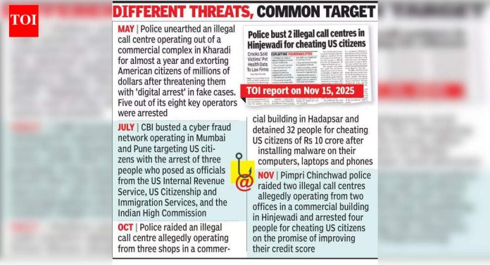 पुणे : कोरेगाव पार्क पोलिसांनी बुधवारी पहाटे छापा टाकून एका महिलेसह पाच जणांना अटक केल्यानंतर अमेरिकेतील नागरिकांना स्वस्तात कर्ज देण्याचे आमिष दाखवून फसवणूक करणाऱ्या बेकायदेशीर कॉल सेंटरचा भंडाफोड केल्याचा दावा केला आहे. कॉलसेंटर गल्ली क्र. मधील एका गृहनिर्माण संस्थेतील फ्लॅटमधून सुरू होते. 6 कोरेगाव पार्क, पोलिसांनी सांगितले आणि जोडले की पाच लॅपटॉप आणि 10 मोबाईल फोन जप्त केले.वरिष्ठ पोलिस निरीक्षक संगिता जाधव यांनी सांगितले की, “आम्ही नागालँडमधील एक महिला (24), मेघालयातील एक पुरुष आणि पुणे शहरातील विविध भागांतील तीन पुरुषांना अटक केली आहे. हे सर्वजण अवैध कॉल सेंटर चालवत असल्याचे आढळून आले आहे. त्यांच्या प्राथमिक चौकशीत, पाच संशयितांनी आम्हाला सांगितले की ते गेल्या एक महिन्यापासून ही सुविधा चालवत होते.”पोलिस उपनिरीक्षक श्रीकांत चव्हाण आणि त्यांच्या पथकाने काही सायबर तज्ज्ञांसह एका गुप्त माहितीच्या आधारे छापा टाकला. अटक करण्यात आलेले पाच जण फ्लॅटमध्ये डायनिंग टेबल आणि सोफा सेटवर लॅपटॉप आणि मोबाइल फोन चालवताना आढळून आले. “आमची टीम जप्त केलेल्या लॅपटॉप आणि मोबाईल फोन्सची तपासणी करत आहे. या गॅझेट्सची पडताळणी आणि विश्लेषण केल्यावर या बेकायदेशीर ऑपरेशनची व्याप्ती, पैशांच्या बाबतीत आणि फसवणूक झालेल्या लोकांची संख्या स्पष्ट होईल,” जाधव म्हणाले. ती म्हणाली की तपासात असे दिसून आले की संशयितांकडे अमेरिकन नागरिकांचा डेटाबेस आहे, ज्यांचे क्रेडिट रेटिंग खराब होते. ते अशा लोकांशी संपर्क साधतील आणि त्यांना स्वस्त व्याजदरात कर्जाची गरज आहे का ते विचारतील, असे जाधव म्हणाले.“हे सर्व स्क्रिप्टेड होते. एकदा एखाद्या यूएस नागरिकाने कर्ज सुरक्षित करण्यात स्वारस्य दाखवले की, संशयित त्याचे बँकिंग तपशील पिनसह काढून घेतील. नंतर, ते हे तपशील त्यांच्या हँडलरकडे हस्तांतरित करतील, जे आम्हाला संशय आहे की ते दिल्लीच्या राष्ट्रीय राजधानी क्षेत्रामध्ये किंवा यूएसमध्ये आहेत. त्यानंतर हँडलर या बँक खात्यातून पैसे काढून घेतील,” पोलीस अधिकाऱ्याने सांगितले.जाधव म्हणाले की, या पाच जणांनी संपर्क साधलेला प्रत्येकजण पिनसह त्याच्या बँक खात्याचा तपशील शेअर करणार नाही. “अटक करण्यात आलेल्या लोकांना प्रत्येक यशस्वी ‘लक्ष्य’साठी त्यांच्या हँडलरकडून 10 यूएस डॉलर्स मिळाले,” ती म्हणाली. पोलिस आता हँडलर्सचा शोध घेऊन मनी ट्रेल स्थापित करण्यावर भर देत आहेत.