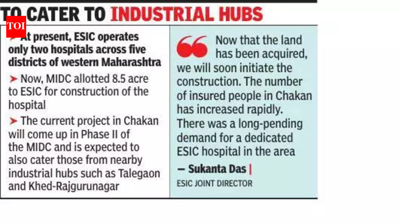 पुणे: महाराष्ट्र औद्योगिक विकास महामंडळ (MIDC) ने या महिन्याच्या सुरुवातीला सुविधेसाठी 8.5 एकर जागा दिल्यावर चाकण औद्योगिक पट्ट्याला पहिले कर्मचारी राज्य विमा महामंडळ (ESIC) संचालित 350 खाटांचे रुग्णालय मिळणार आहे.ESIC सहसंचालक सुकांता दास यांनी TOI ला सांगितले की ESIC योजनेंतर्गत समाविष्ट कर्मचाऱ्यांसाठी प्रत्येकी 100 खाटांची रुग्णालये उभारण्यासाठी महामंडळाने बारामती आणि सातारा येथे जमीनही मिळवली आहे.“आता जमीन संपादित केली गेली आहे, आम्ही लवकरच बांधकाम सुरू करू. चाकणमध्ये विमाधारकांची संख्या झपाट्याने वाढली आहे. या भागात समर्पित ईएसआयसी रुग्णालयाची दीर्घकाळापासून प्रलंबित मागणी होती,” दास म्हणाले.सध्या, ESIC पश्चिम महाराष्ट्रातील पाच जिल्ह्यांमध्ये फक्त दोन रुग्णालये चालवते – पुण्यातील बिबवेवाडी आणि कोल्हापुरात प्रत्येकी एक. याशिवाय, दोन ESIC रुग्णालये राज्य सरकारद्वारे चिंचवडमधील मोहननगर आणि दुसरी सोलापूर येथे चालवली जातात. तथापि, या रूग्णालयांमध्ये आगाऊ उपचारांचा अभाव आहे आणि रूग्णांना बऱ्याचदा ESIC किंवा सरकारी रूग्णालयांसह एकतर खाजगी रूग्णालये निवडण्यास भाग पाडले जाते.चाकणमधील सध्याचा प्रकल्प एमआयडीसीच्या फेज II मध्ये येणार आहे आणि तळेगाव आणि खेड-राजगुरुनगर यांसारख्या जवळच्या औद्योगिक केंद्रांमधील प्रकल्पांनाही ते पूर्ण करेल अशी अपेक्षा आहे.दास पुढे म्हणाले की, सध्या 140 खाटांची क्षमता असलेले सध्याचे बिबवेवाडी ईएसआयसी रुग्णालय देखील अपग्रेड केले जात आहे. “अपग्रेड केलेल्या सुविधेत लवकरच 500 खाटांची क्षमता असेल,” ते म्हणाले.फेडरेशन ऑफ चाकण इंडस्ट्रीजच्या सदस्यांनी सांगितले की, एकट्या चाकण एमआयडीसीमध्ये सात लाखांहून अधिक औद्योगिक कामगार नोंदणीकृत आहेत आणि त्यांना नवीन सुविधेचा फायदा होण्याची शक्यता आहे. “आम्ही अनेक वर्षांपासून या रुग्णालयाची मागणी केली होती. या प्रकल्पाला केंद्रीय कामगार मंत्र्यांनी 2022 मध्ये मंजुरी दिली असली तरी जमिनीशी संबंधित समस्यांमुळे याला विलंब झाला,” असे चाकण इंडस्ट्रीज फेडरेशनचे सीईओ दिलीप बटवाल यांनी सांगितले.बटवाल म्हणाले की, औद्योगिक पट्ट्यात सध्या केवळ ईएसआयसीद्वारे चालवल्या जाणाऱ्या ओपीडी सुविधा आहे, परंतु पुढील उपचारांसाठी कोणतेही रुग्णालय नाही. विमा उतरवलेले कामगार ESIC अंतर्गत सूचीबद्ध सरकारी रुग्णालये किंवा खाजगी रुग्णालयांवर अवलंबून असतात, त्यापैकी बरेच औद्योगिक पट्ट्यापासून दूर आहेत. “अनेकदा त्यांना उपचारासाठी आगाऊ पैसे द्यावे लागतात आणि ते परतफेडीची मागणी करतात, परंतु ते त्यांच्यासाठी अन्यायकारक होते कारण त्यांना उपचाराचा उच्च खर्च परवडत नाही,” तो म्हणाला.ESIC योजनेंतर्गत, कर्मचाऱ्यांच्या 